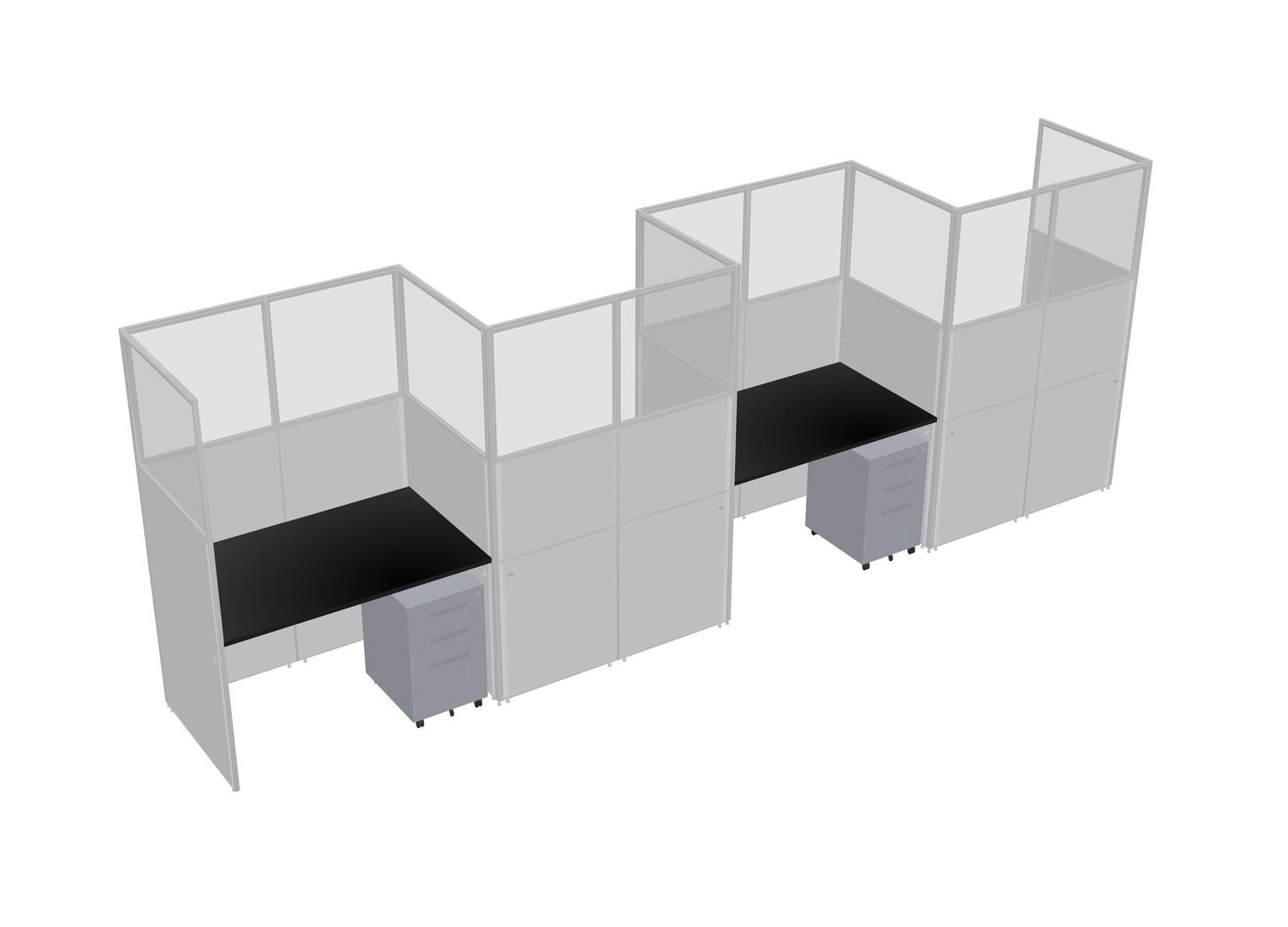 Black Rectangular Cubicle Workstations For 4 - Zigzag Formation + Grey Metal Mobile Drawers