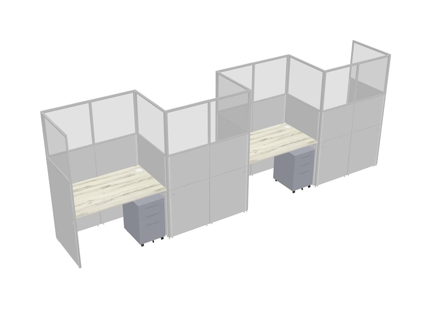 Heinne Holz Rectangular Cubicle Workstations For 4 - Zigzag Formation + Grey Metal Mobile Drawers