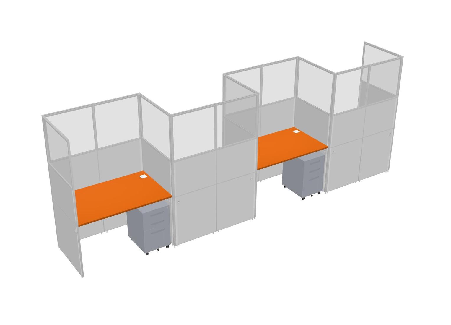 Orange Rectangular Cubicle Workstations For 4 - Zigzag Formation + Grey Metal Mobile Drawers