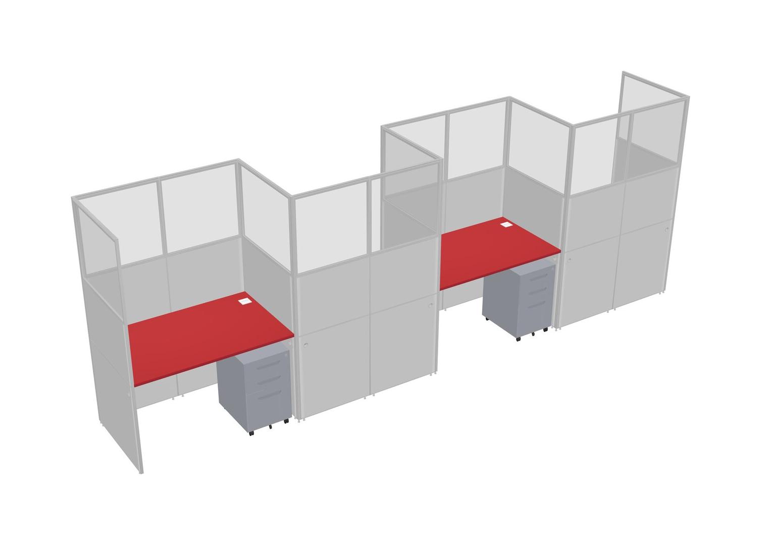 Prism Red Rectangular Cubicle Workstations For 4 - Zigzag Formation + Grey Metal Mobile Drawers