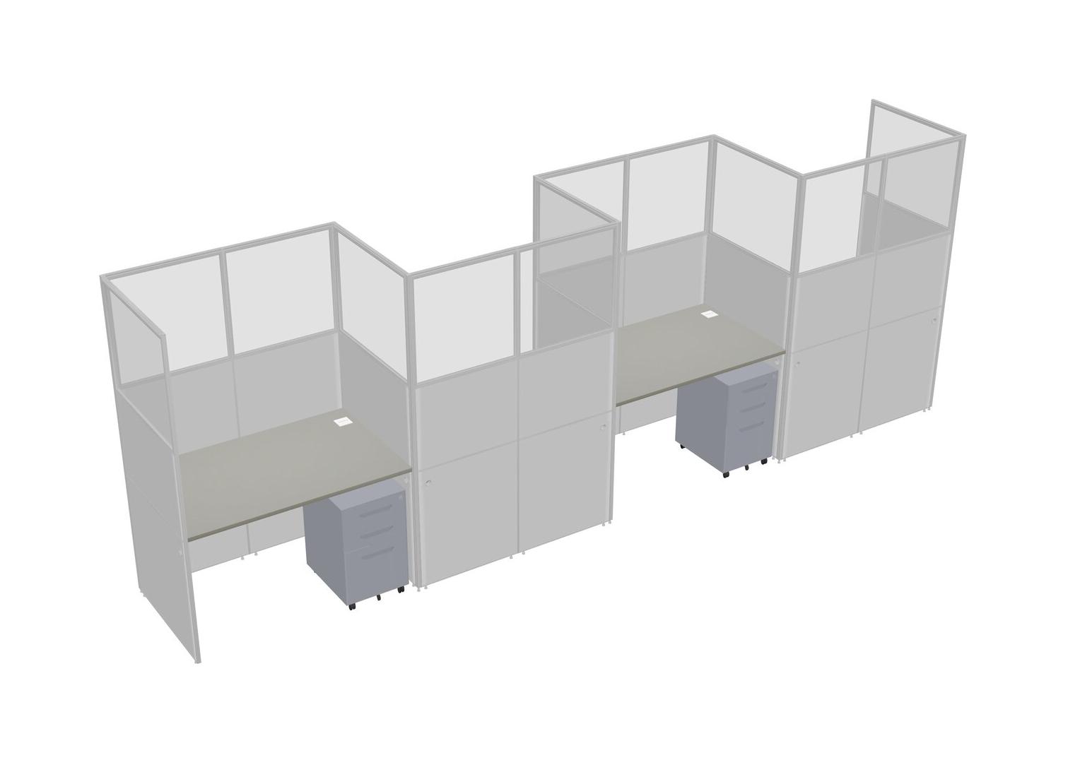 Grey Shadows Rectangular Cubicle Workstations For 4 - Zigzag Formation + Grey Metal Mobile Drawers