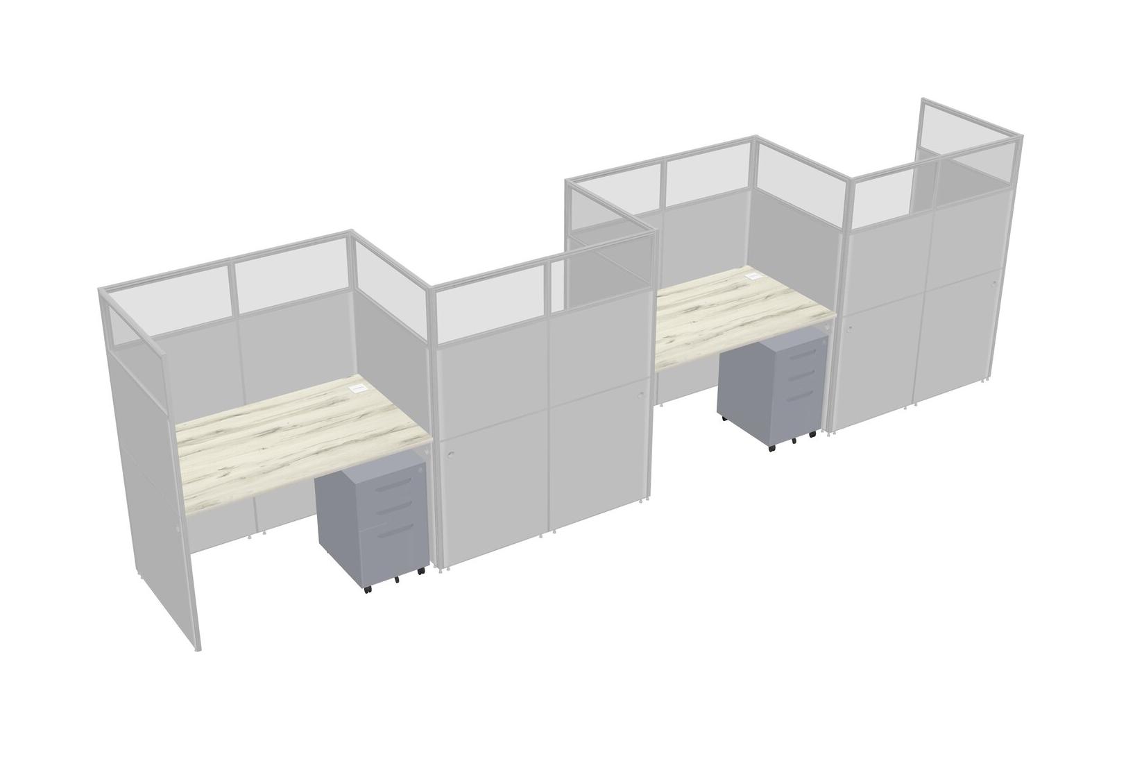 Heinne Holz Rectangular Cubicle Workstations For 4 - Zigzag Formation + Grey Metal Mobile Drawers