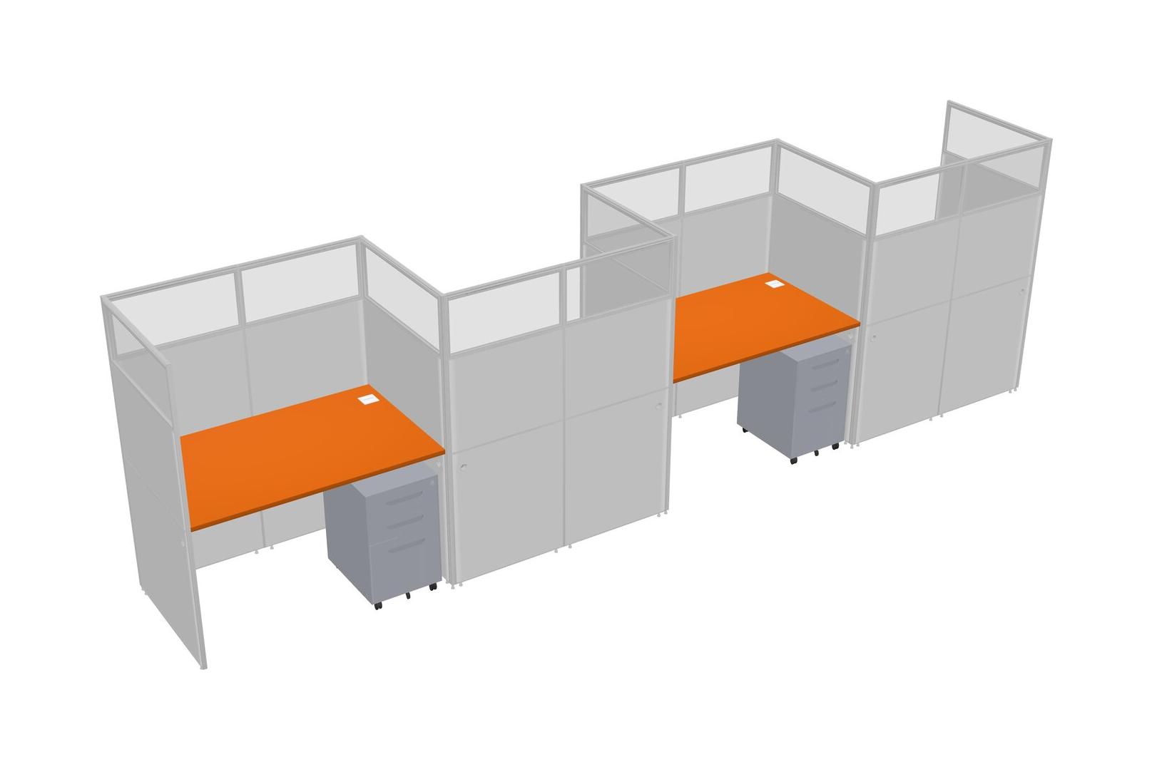 Orange Rectangular Cubicle Workstations For 4 - Zigzag Formation + Grey Metal Mobile Drawers