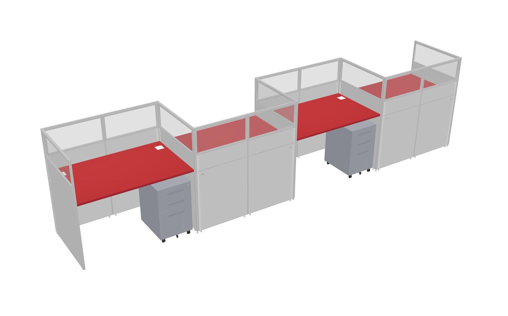 Prism Red Rectangular Cubicle Workstations For 4 - Zigzag Formation + Grey Metal Mobile Drawers