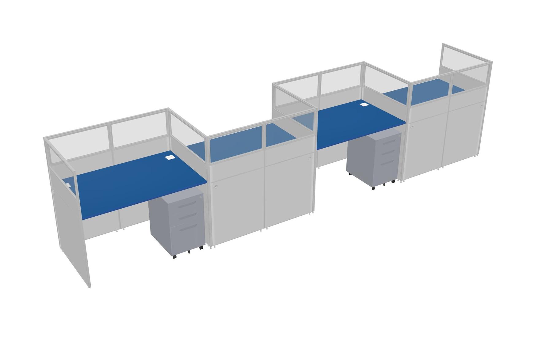 Prism Blue Rectangular Cubicle Workstations For 4 - Zigzag Formation + Grey Metal Mobile Drawers