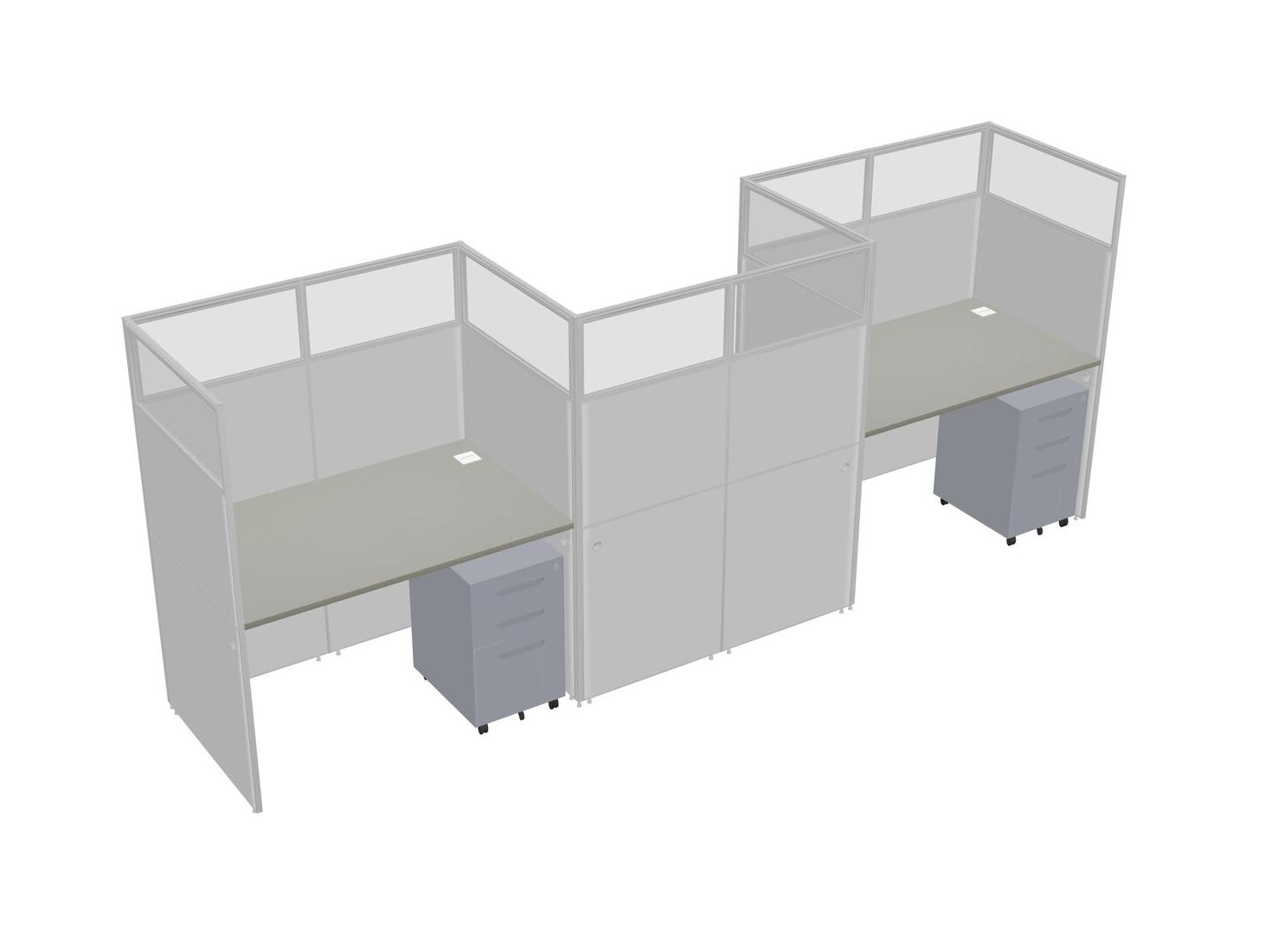Grey Shadows Rectangular Cubicle Workstations For 3 - Zigzag Formation + Grey Metal Mobile Drawers