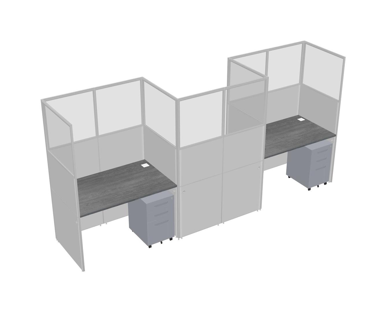 Grey Rectangular Cubicle Workstations For 3 - Zigzag Formation + Grey Metal Mobile Drawers
