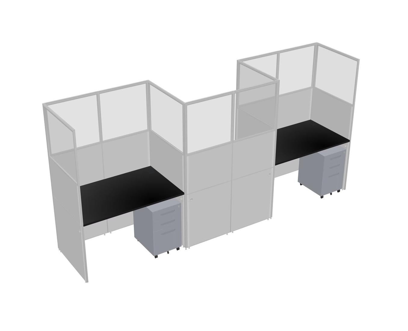 Black Rectangular Cubicle Workstations For 3 - Zigzag Formation + Grey Metal Mobile Drawers