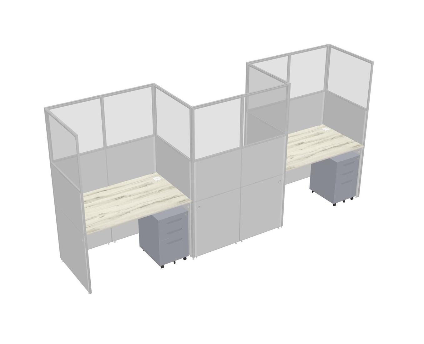 Heinne Holz Rectangular Cubicle Workstations For 3 - Zigzag Formation + Grey Metal Mobile Drawers