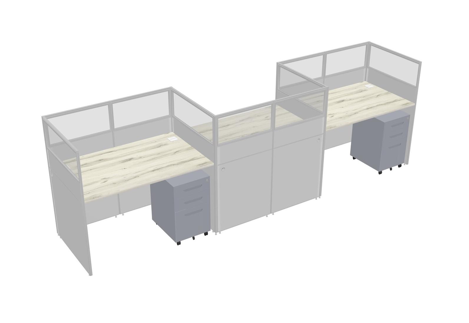 Heinne Holz Rectangular Cubicle Workstations For 3 - Zigzag Formation + Grey Metal Mobile Drawers