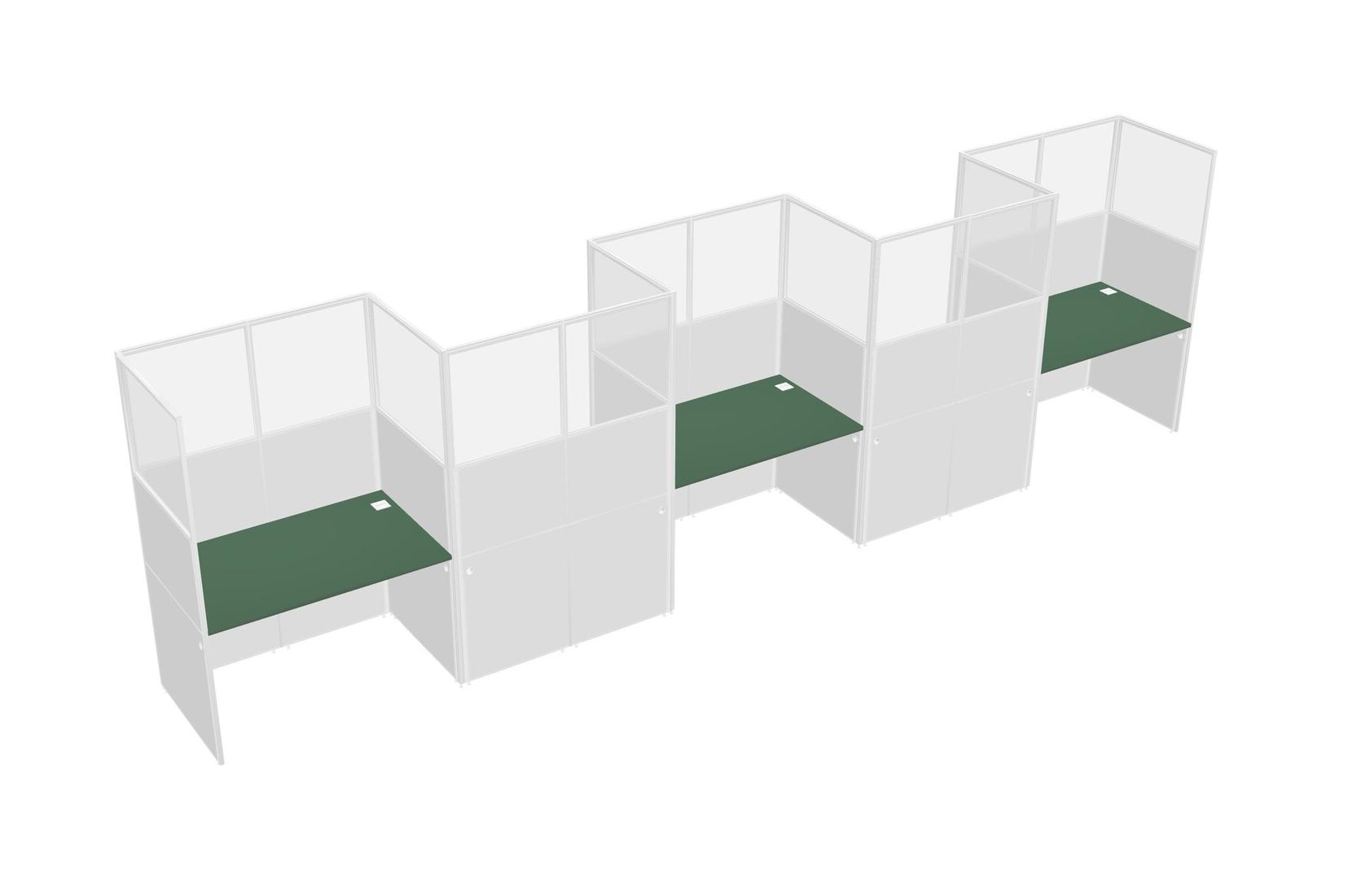 Green Rectangular Cubicle Workstations For 5 - Zigzag Formation