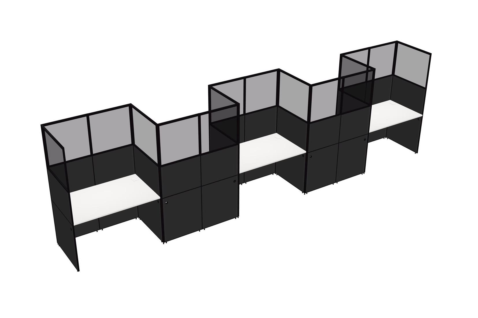 White Rectangular Cubicle Workstations For 5 - Zigzag Formation