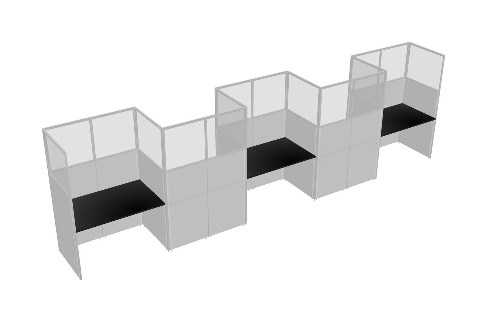 Black Rectangular Cubicle Workstations For 5 - Zigzag Formation