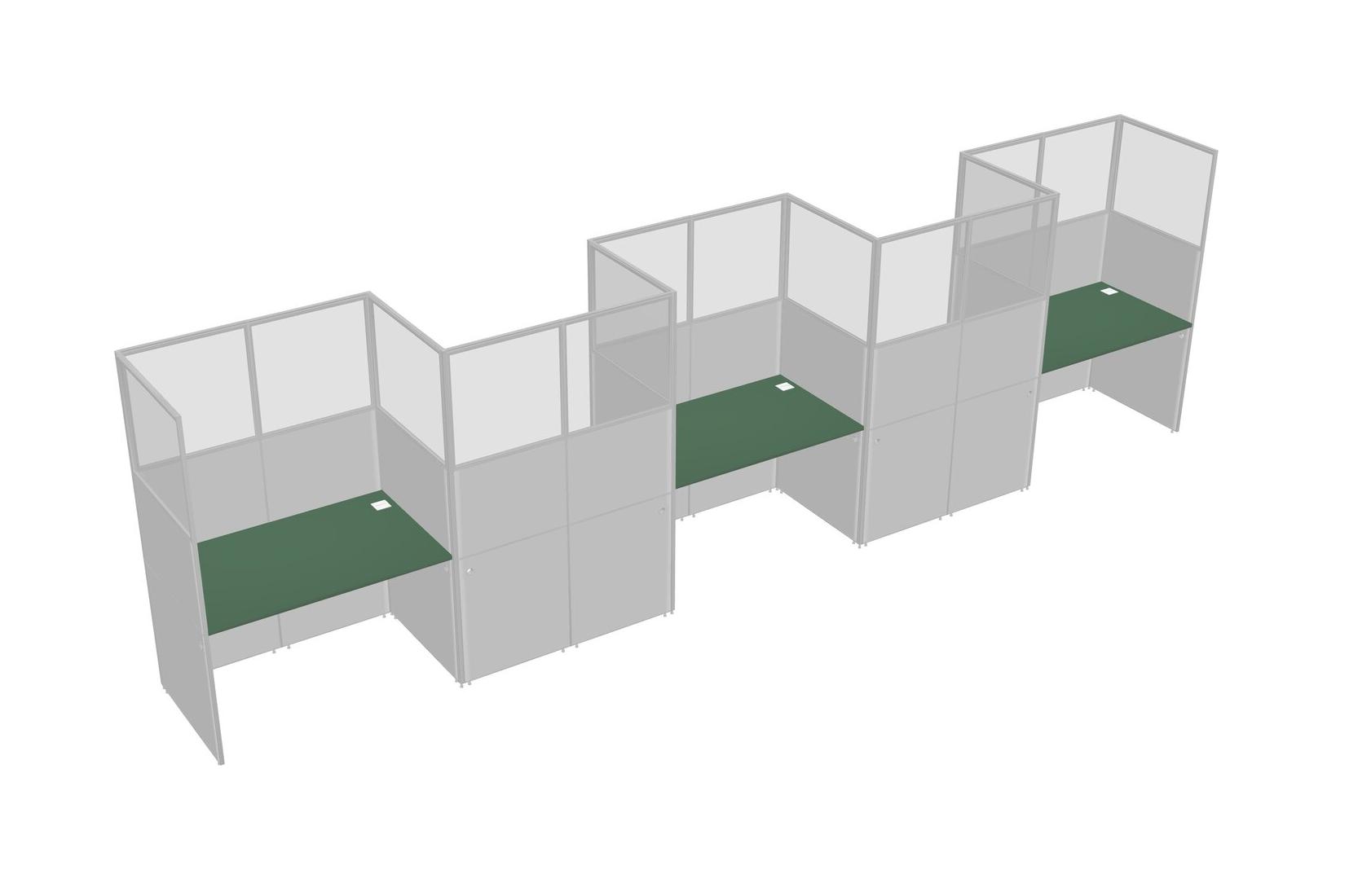 Green Rectangular Cubicle Workstations For 5 - Zigzag Formation