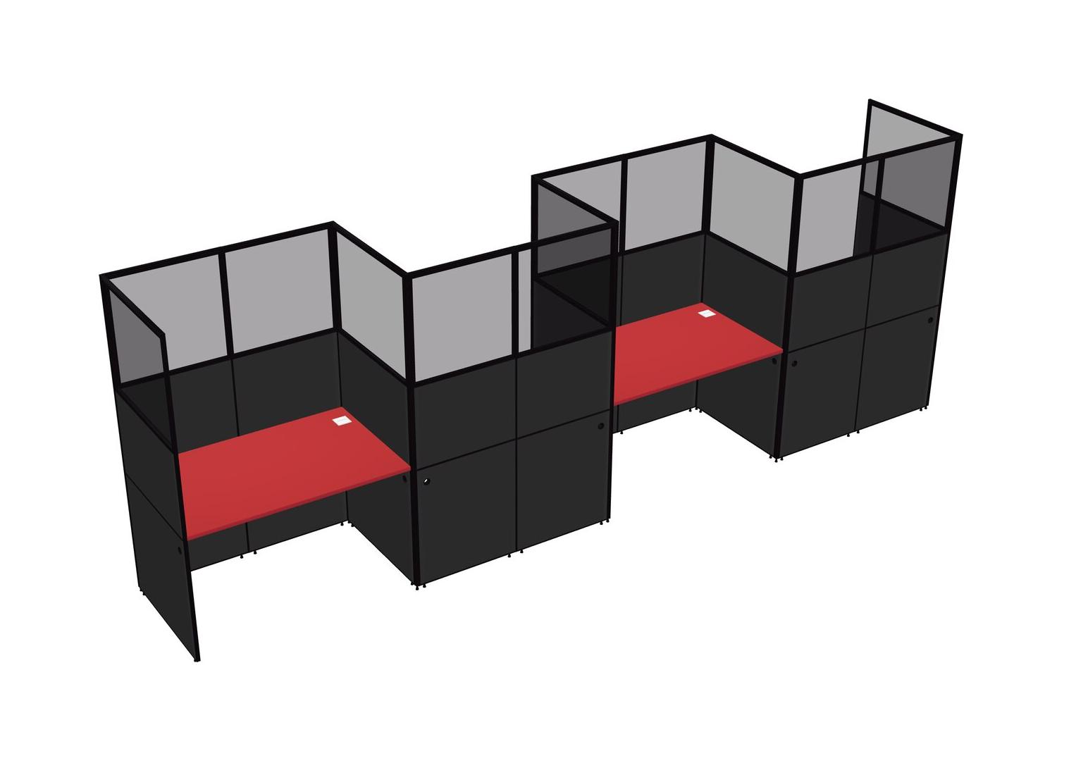 Prism Red Rectangular Cubicle Workstations For 4 - Zigzag Formation
