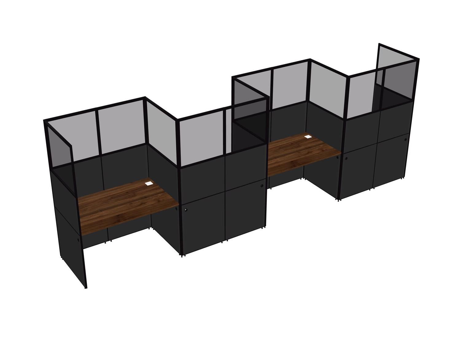 Columbia Walnut Rectangular Cubicle Workstations For 4 - Zigzag Formation