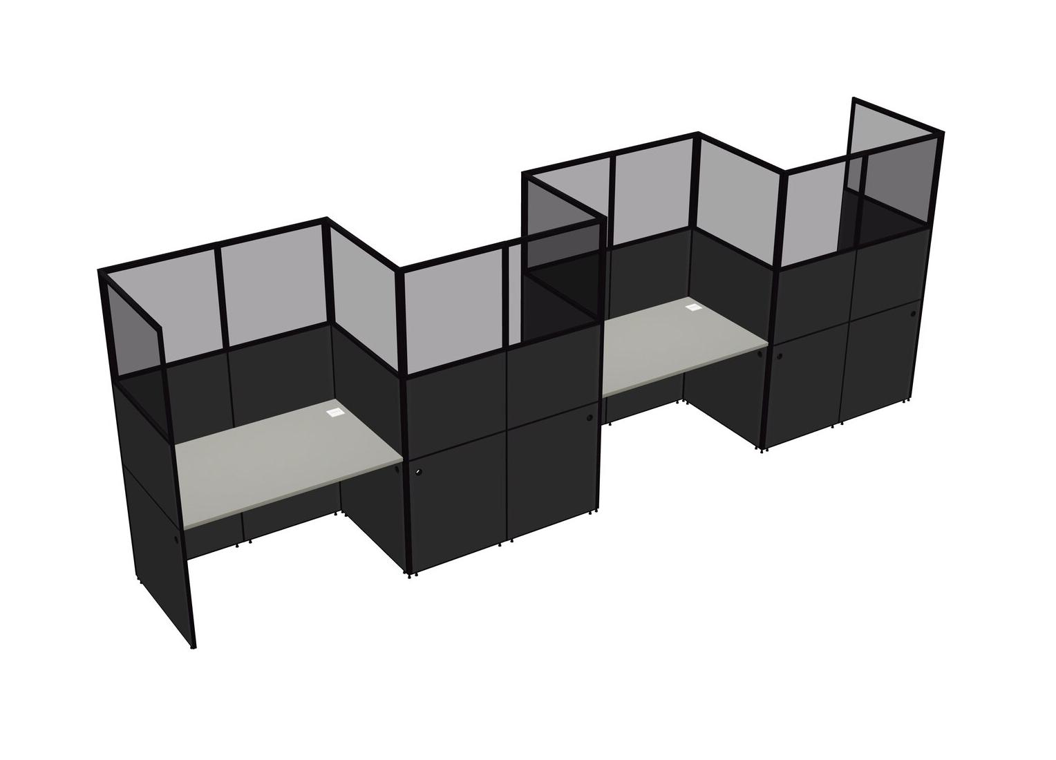 Grey Shadows Rectangular Cubicle Workstations For 4 - Zigzag Formation