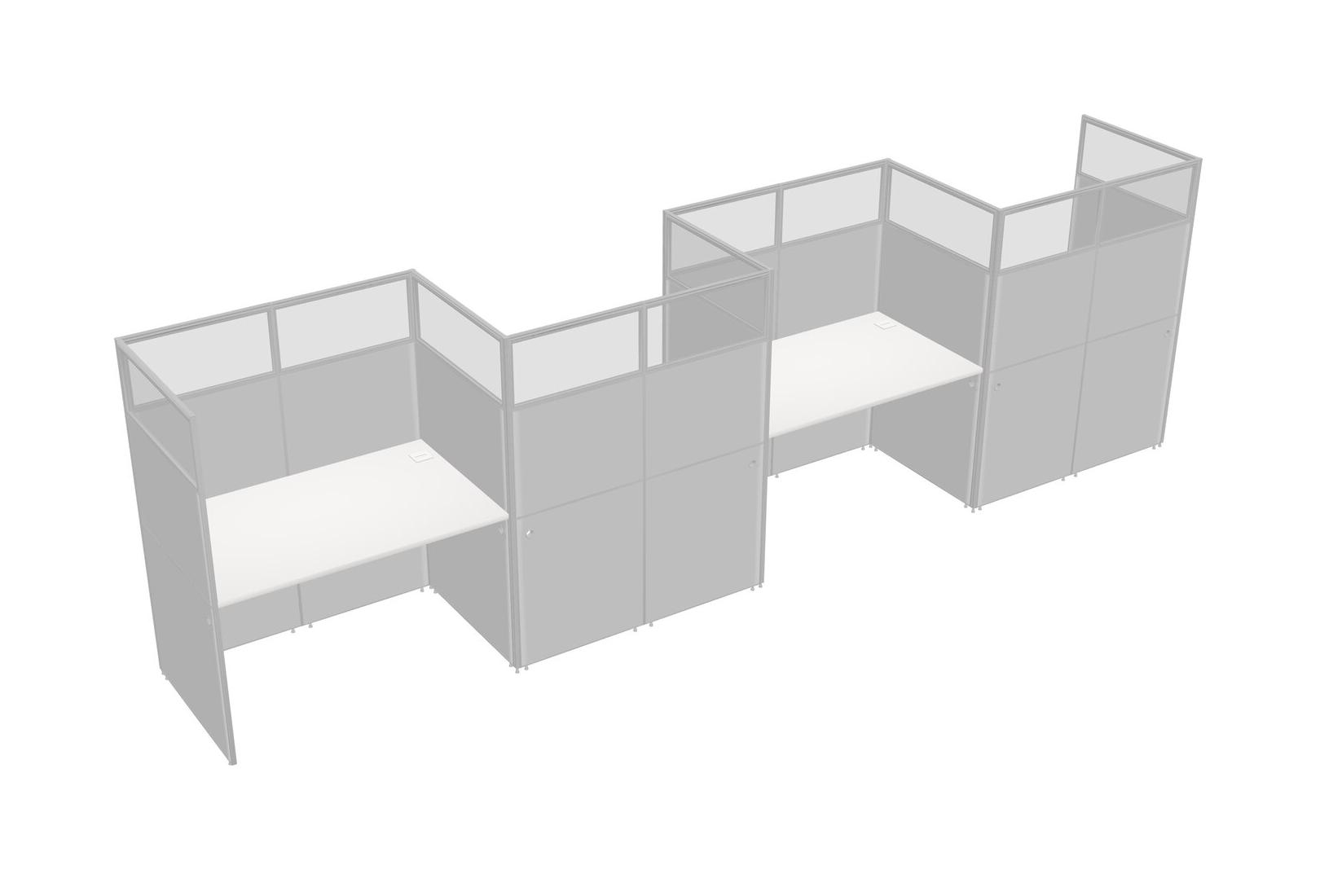 White Rectangular Cubicle Workstations For 4 - Zigzag Formation