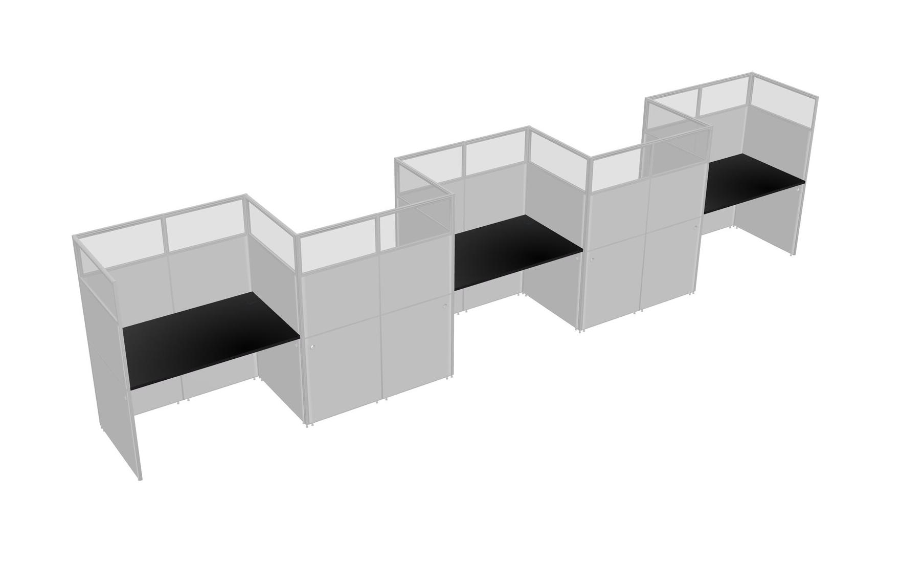Black Rectangular Cubicle Workstations For 5 - Zigzag Formation