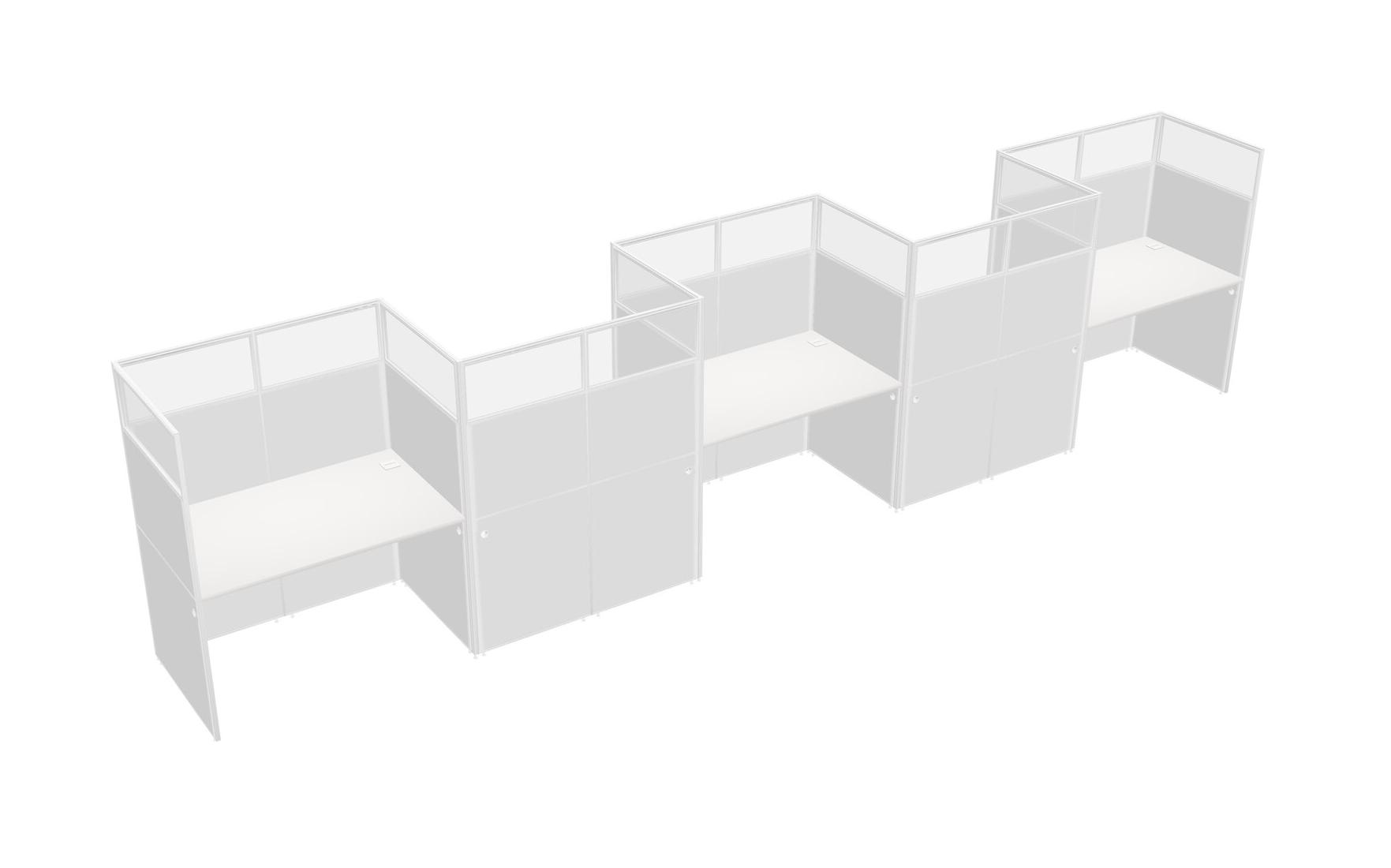 White Rectangular Cubicle Workstations For 5 - Zigzag Formation