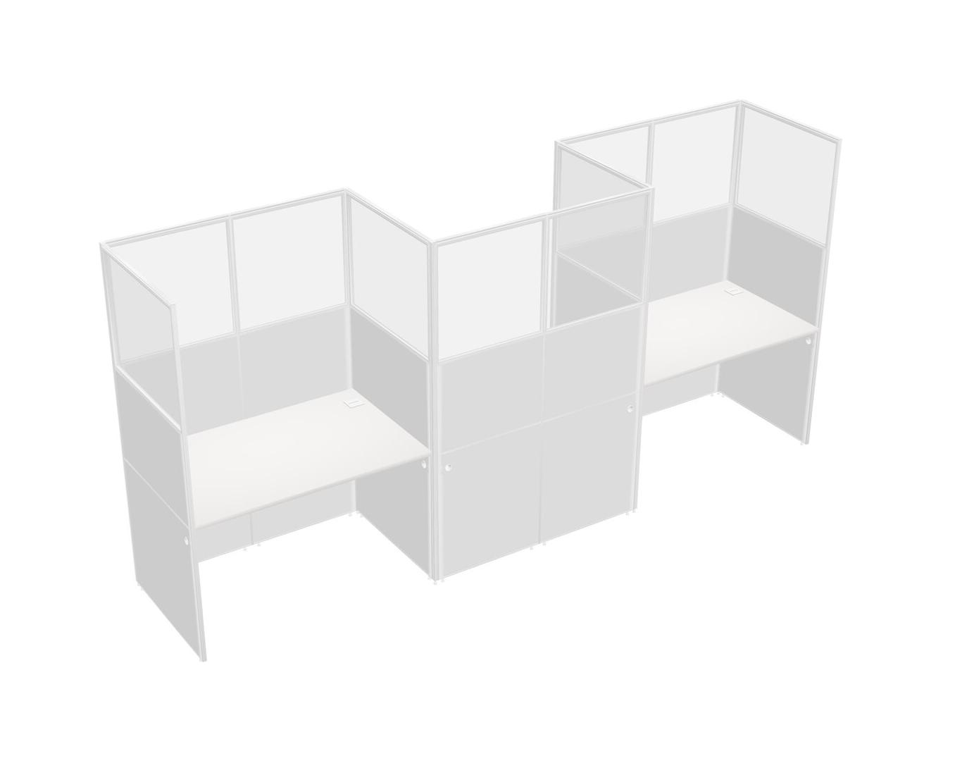 White Rectangular Cubicle Workstations For 3 - Zigzag Formation