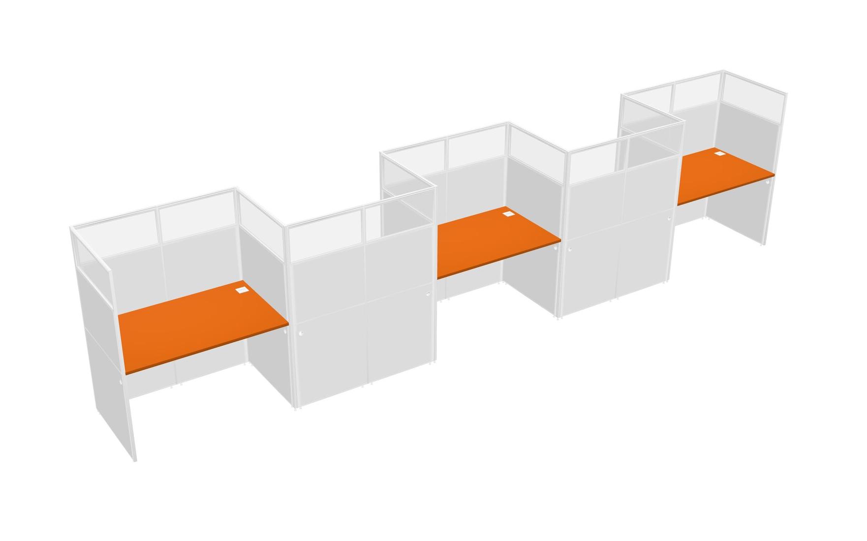 Orange Rectangular Cubicle Workstations For 5 - Zigzag Formation