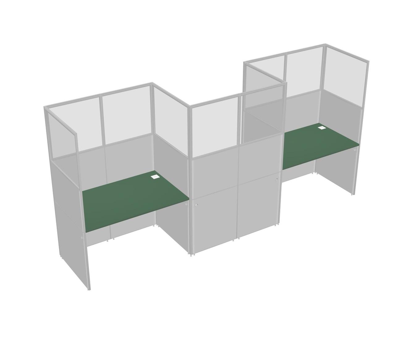 Green Rectangular Cubicle Workstations For 3 - Zigzag Formation