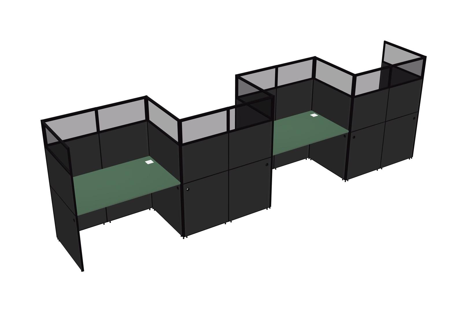 Green Rectangular Cubicle Workstations For 4 - Zigzag Formation
