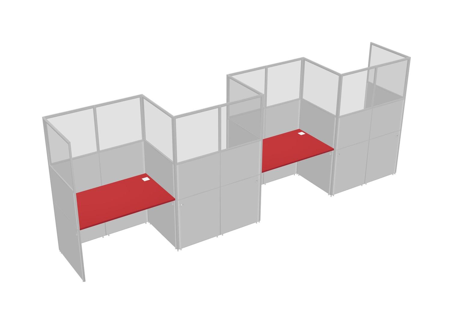 Prism Red Rectangular Cubicle Workstations For 4 - Zigzag Formation