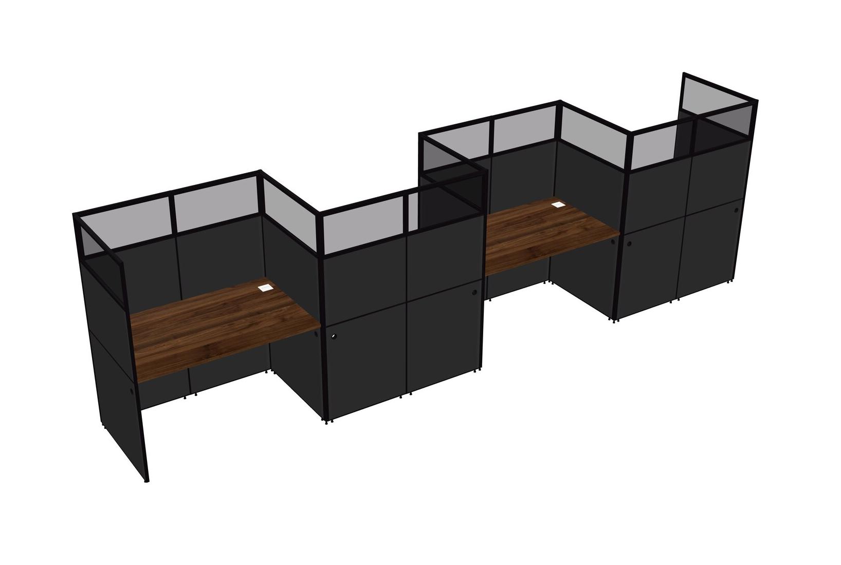 Columbia Walnut Rectangular Cubicle Workstations For 4 - Zigzag Formation