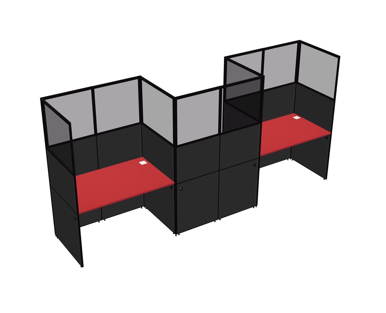 Prism Red Rectangular Cubicle Workstations For 3 - Zigzag Formation