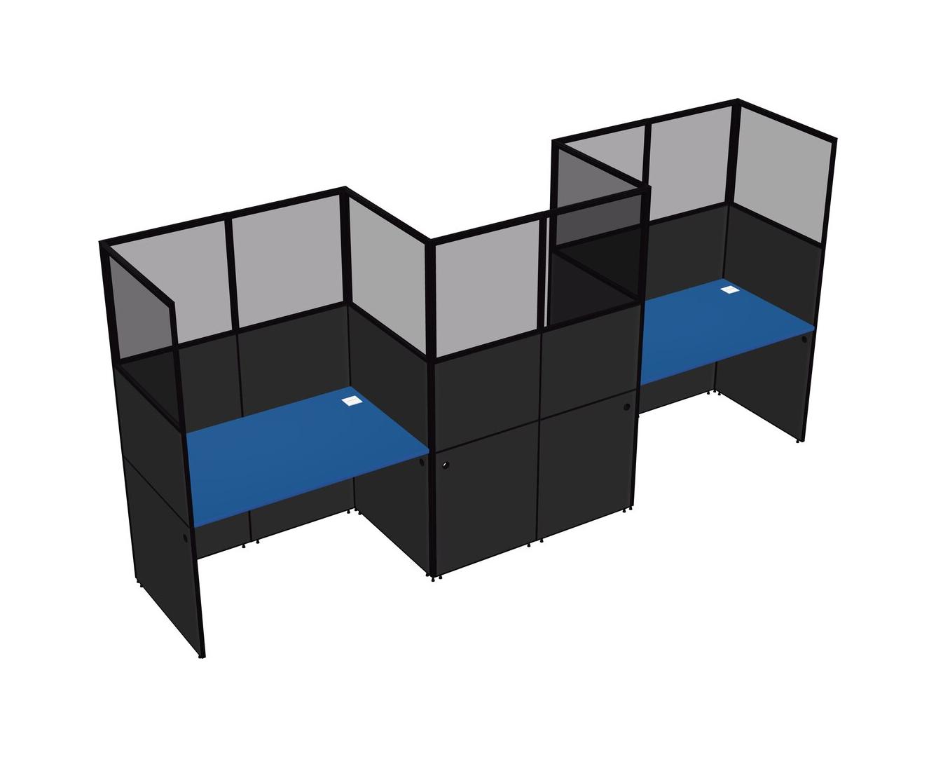 Prism Blue Rectangular Cubicle Workstations For 3 - Zigzag Formation