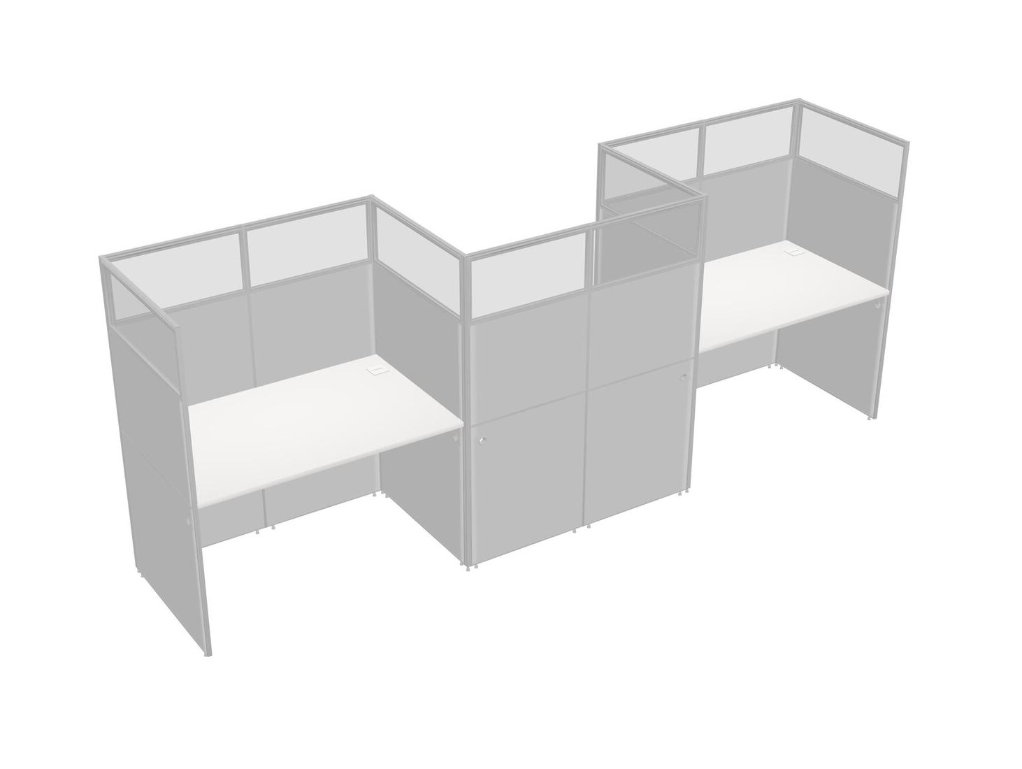 White Rectangular Cubicle Workstations For 3 - Zigzag Formation