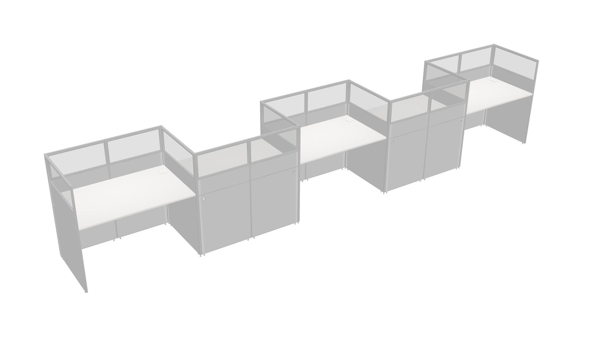 White Rectangular Cubicle Workstations For 5 - Zigzag Formation