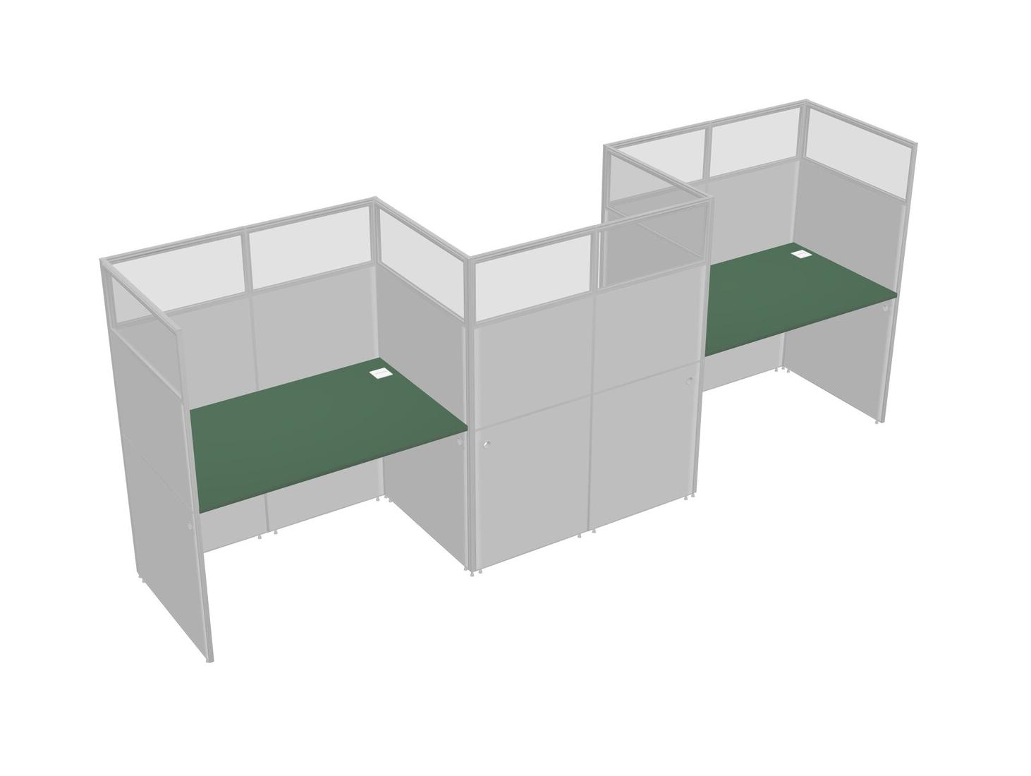 Green Rectangular Cubicle Workstations For 3 - Zigzag Formation