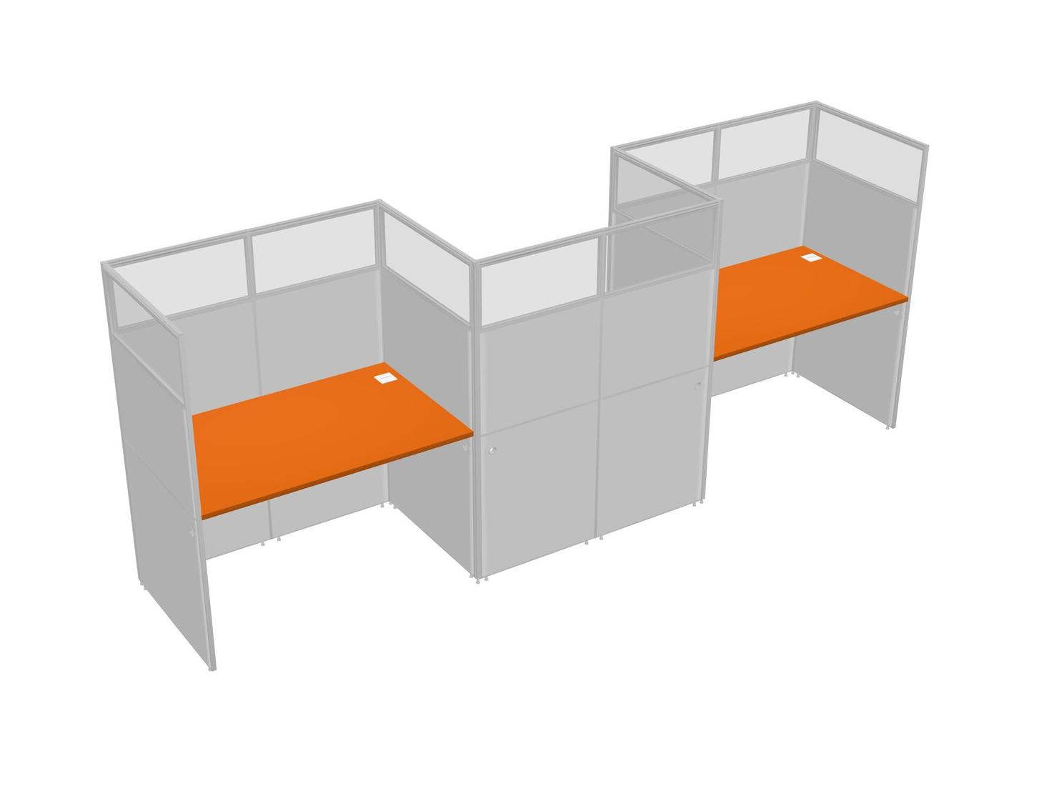 Orange Rectangular Cubicle Workstations For 3 - Zigzag Formation
