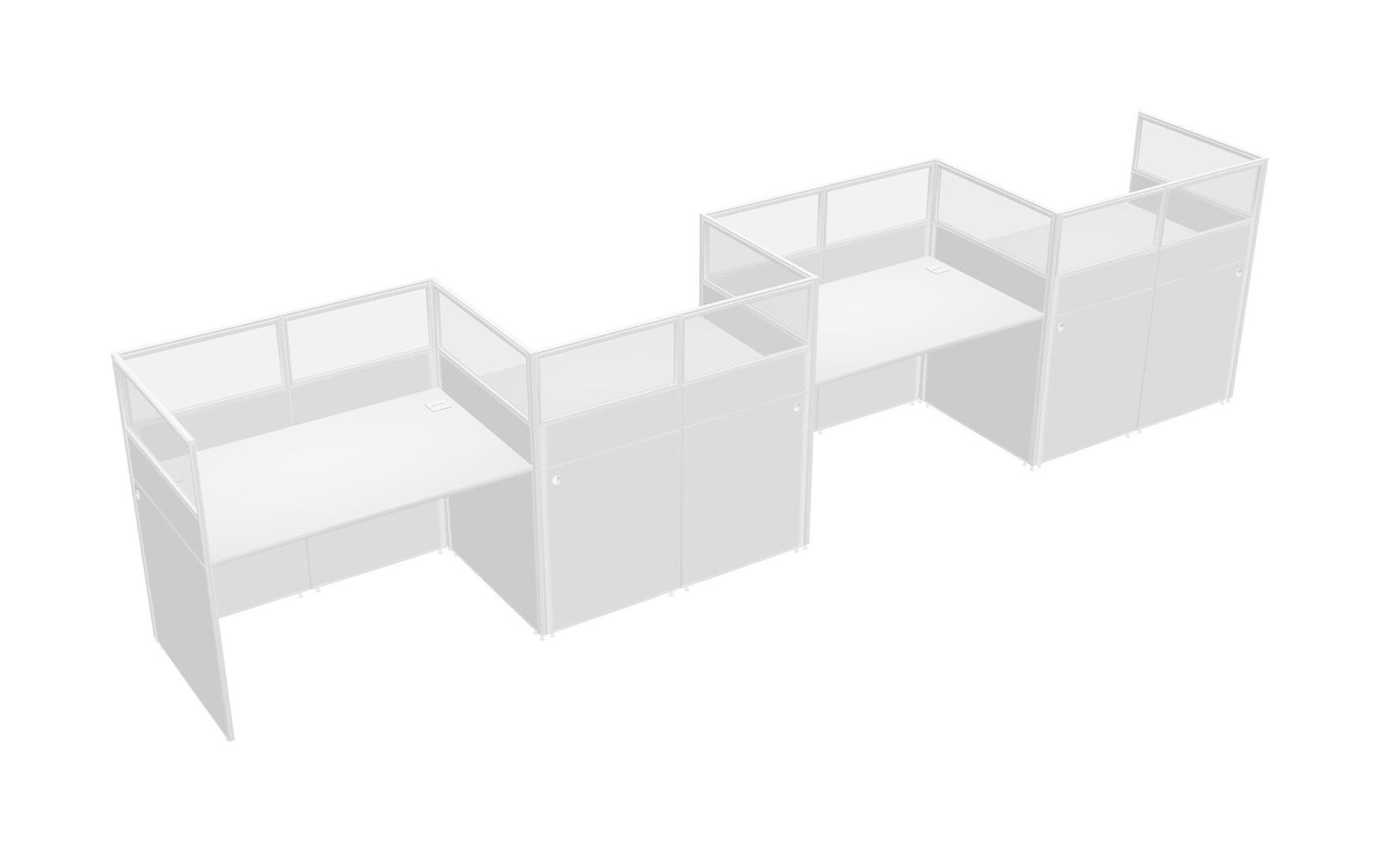 White Rectangular Cubicle Workstations For 4 - Zigzag Formation
