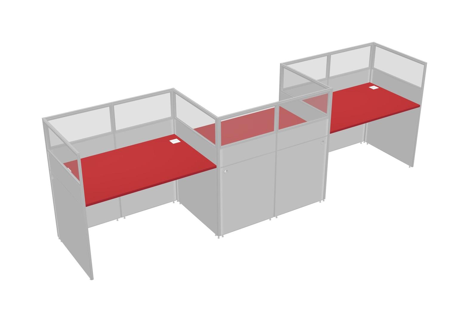 Prism Red Rectangular Cubicle Workstations For 3 - Zigzag Formation