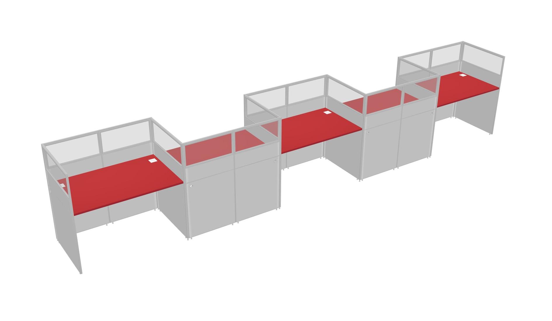 Prism Red Rectangular Cubicle Workstations For 5 - Zigzag Formation