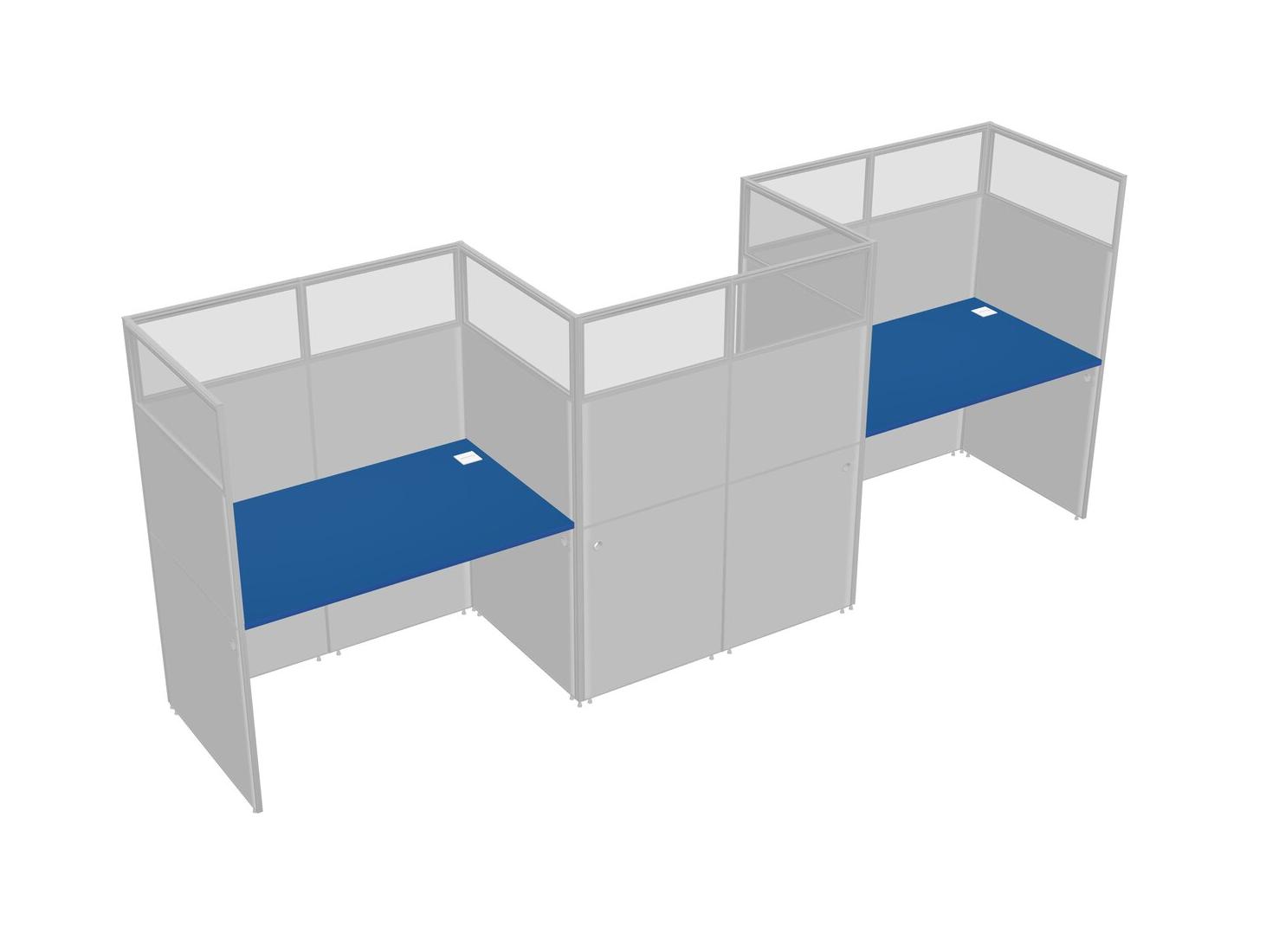 Prism Blue Rectangular Cubicle Workstations For 3 - Zigzag Formation