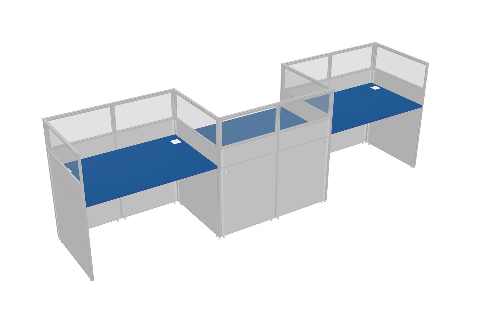 Prism Blue Rectangular Cubicle Workstations For 3 - Zigzag Formation