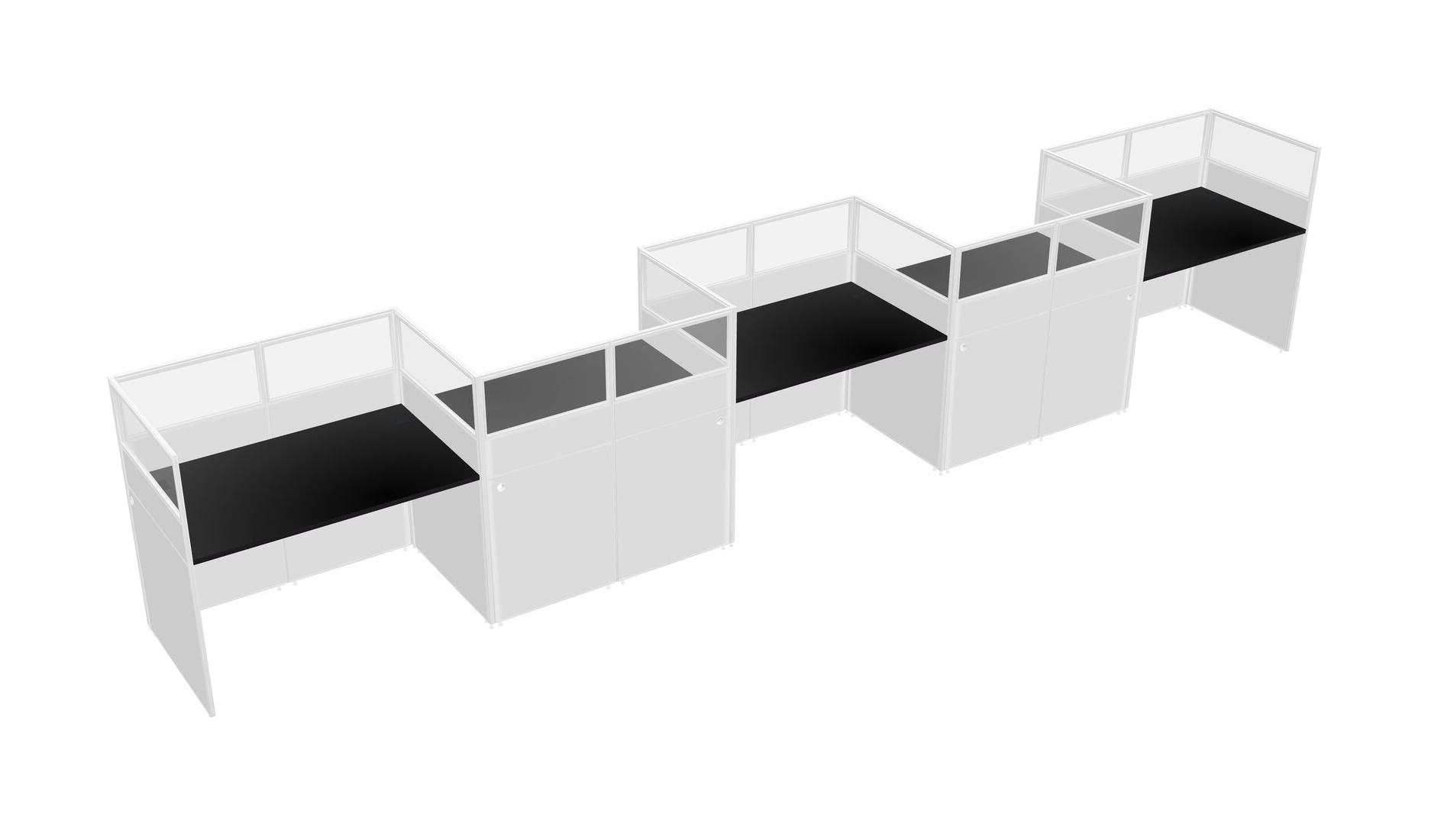 Black Rectangular Cubicle Workstations For 5 - Zigzag Formation