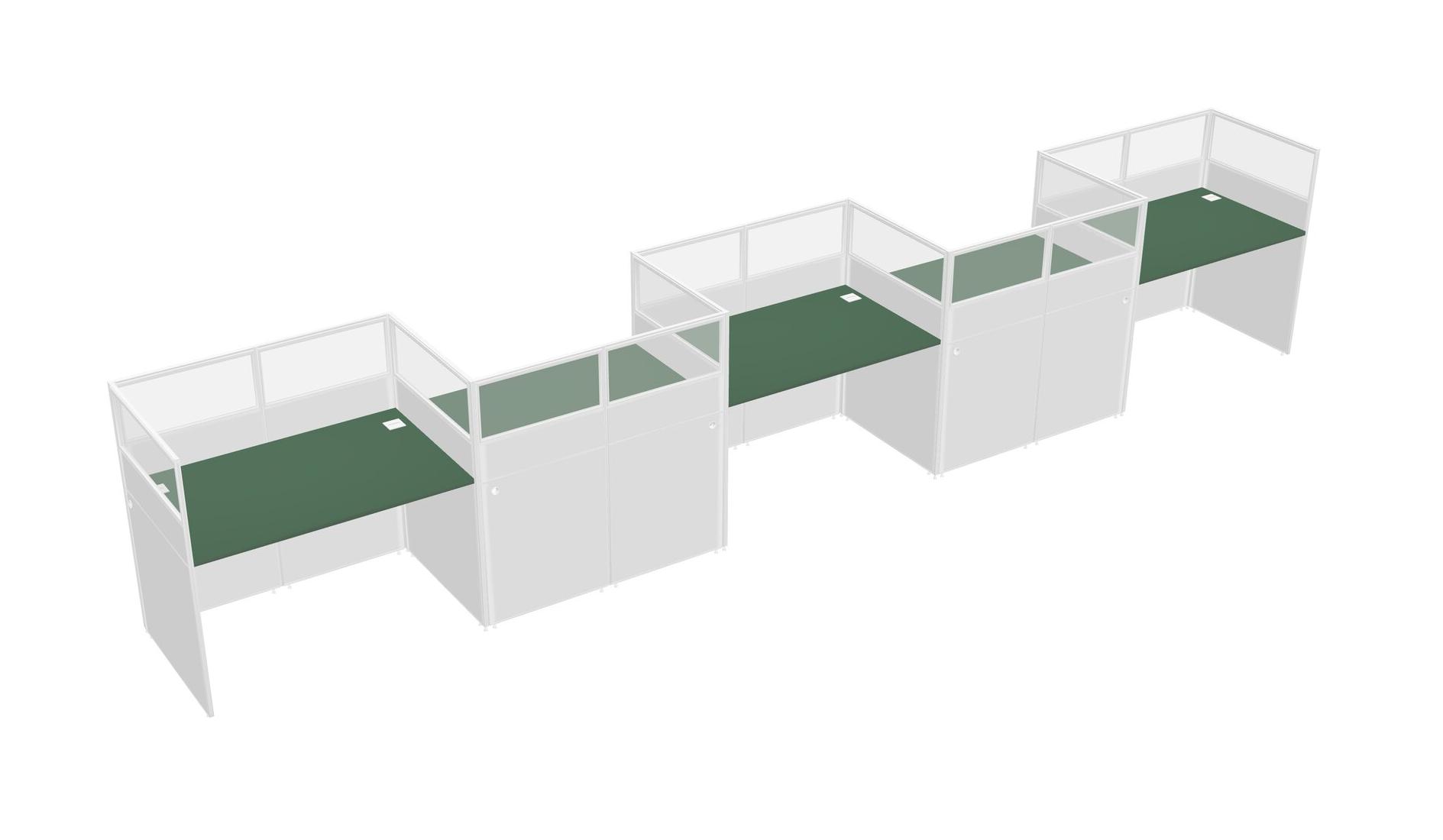 Green Rectangular Cubicle Workstations For 5 - Zigzag Formation