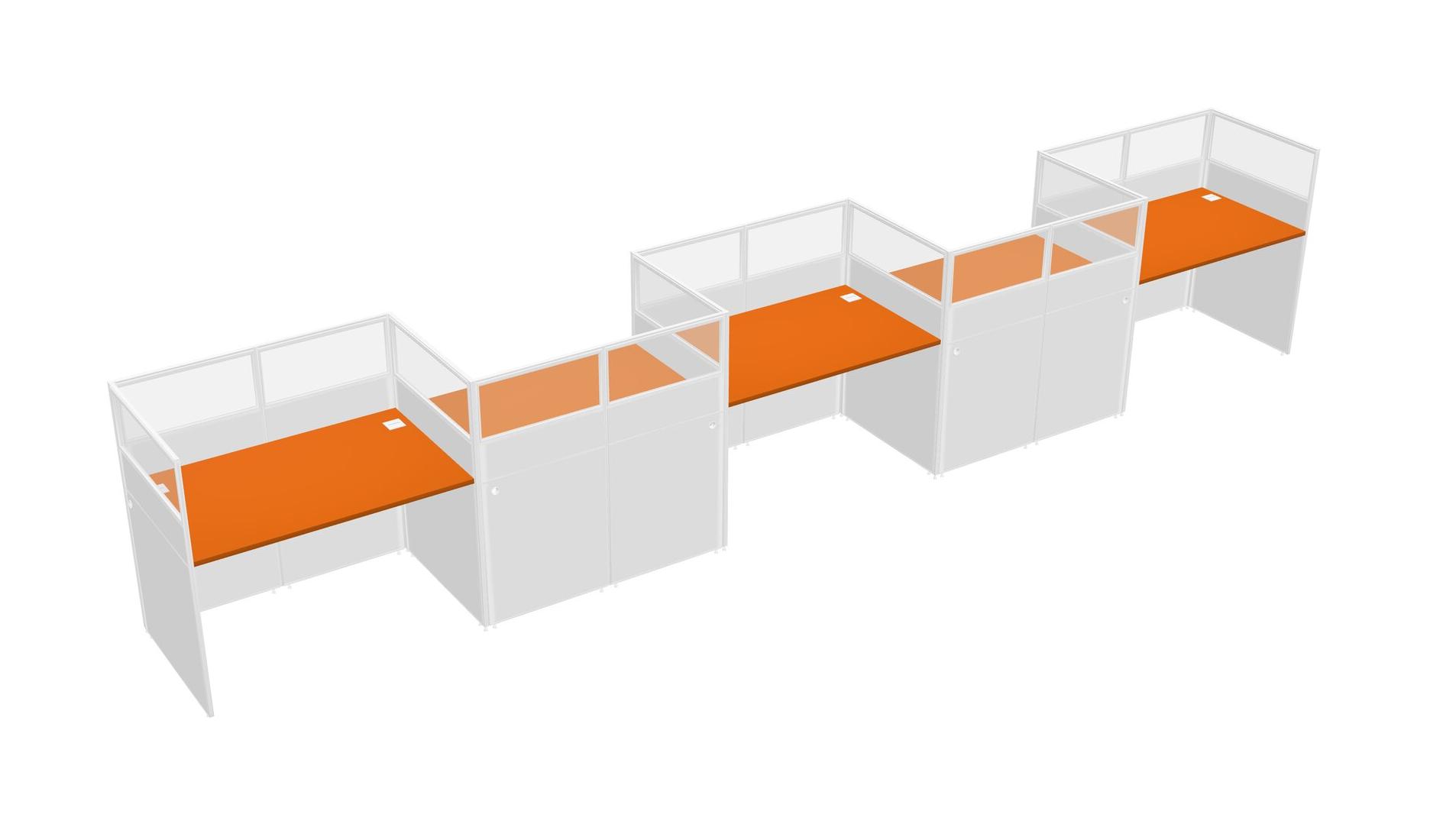 Orange Rectangular Cubicle Workstations For 5 - Zigzag Formation