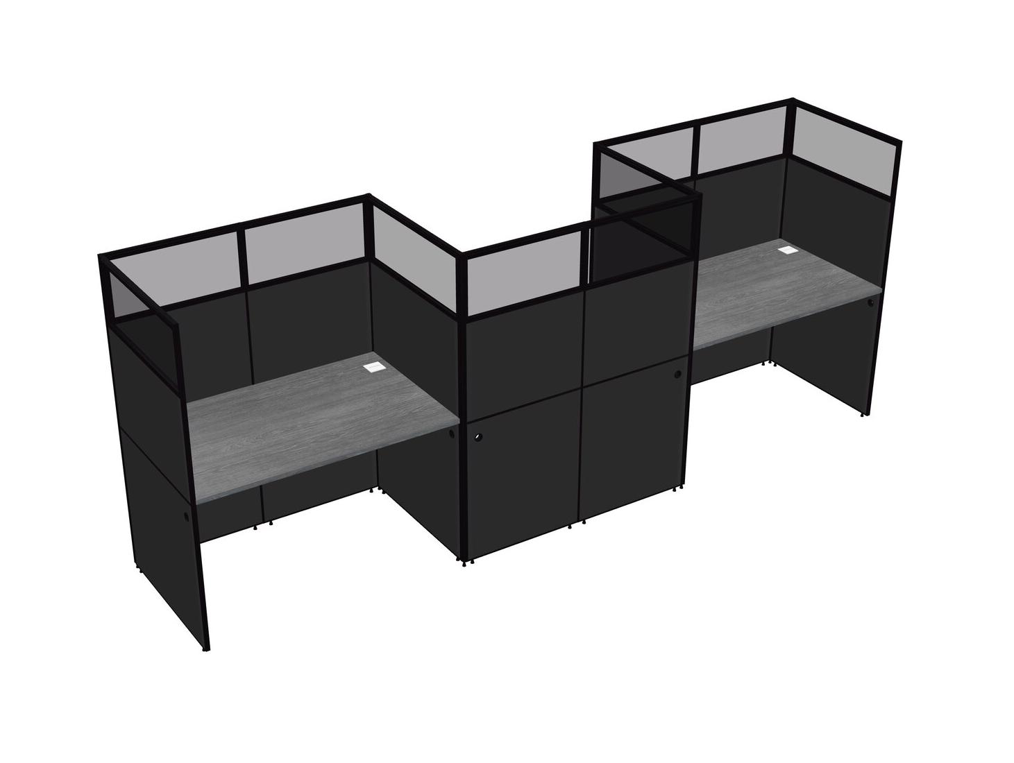 Grey Rectangular Cubicle Workstations For 3 - Zigzag Formation