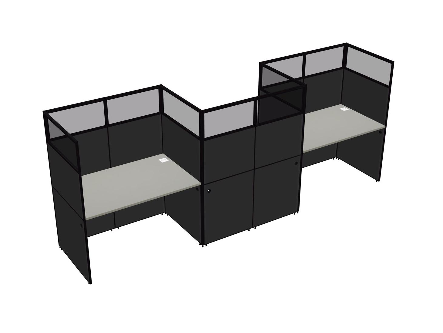 Grey Shadows Rectangular Cubicle Workstations For 3 - Zigzag Formation