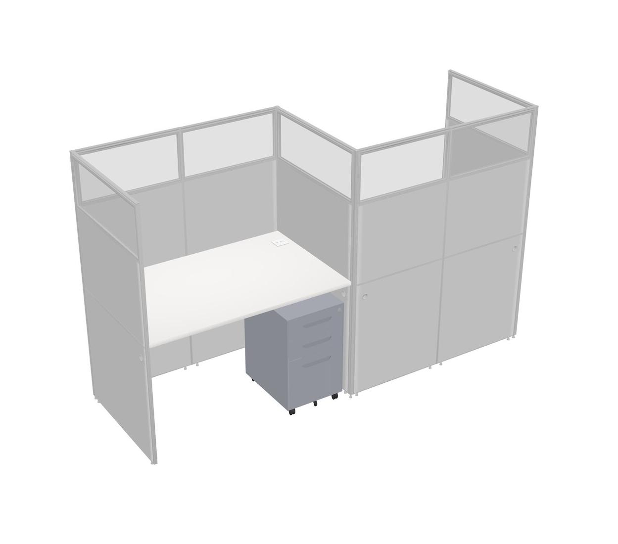 White Rectangular Cubicle Workstations For 2 - Zigzag Formation + Grey Metal Mobile Drawers
