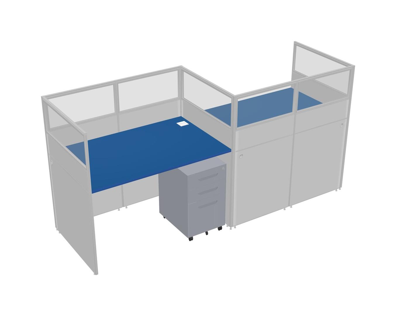 Prism Blue Rectangular Cubicle Workstations For 2 - Zigzag Formation + Grey Metal Mobile Drawers