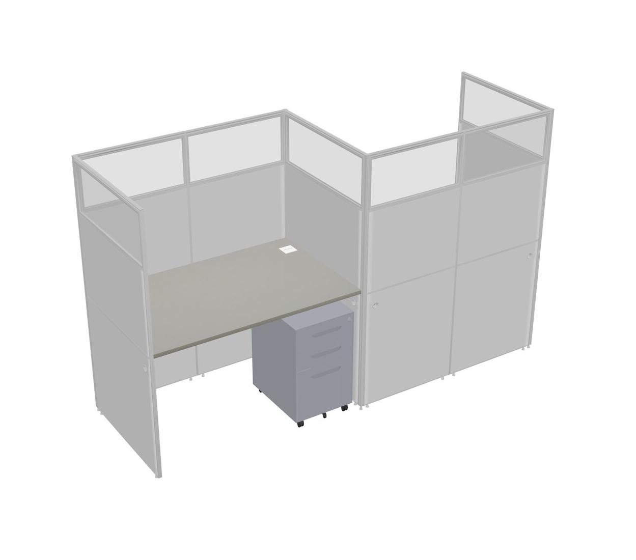 Grey Shadows Rectangular Cubicle Workstations For 2 - Zigzag Formation + Grey Metal Mobile Drawers