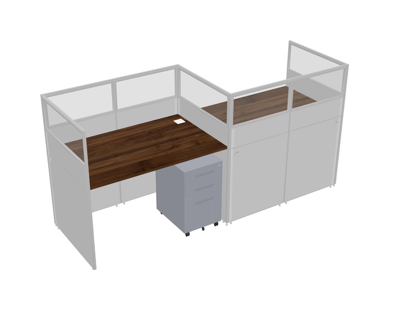 Columbia Walnut Rectangular Cubicle Workstations For 2 - Zigzag Formation + Grey Metal Mobile Drawers